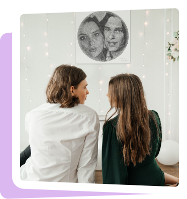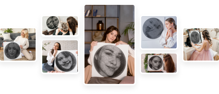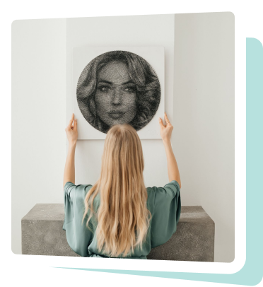 Wir haben die hochwertigsten Materialien verwendet und dies mit einer einzigartigen Software kombiniert, aber nur Sie können dem Bild Individualität verleihen denn nur Sie erstellen Ihr RingString-Bild. Das Bild wird als ein
