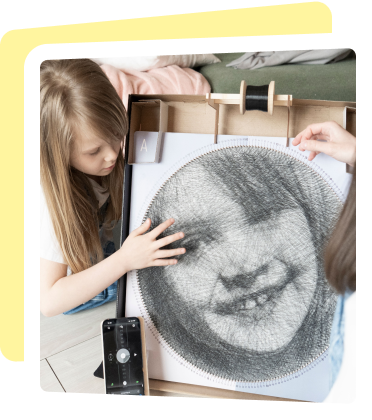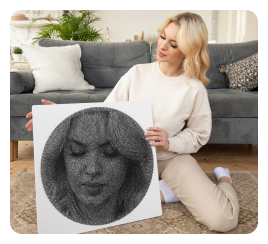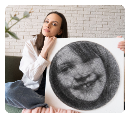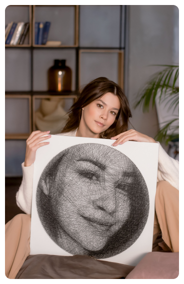 Das Bild wird als ein durchgehender Faden erstellt, der Schritt für Schritt die Umrisse Ihres Fotos zeichnet und Detail für Detail hervorhebt.